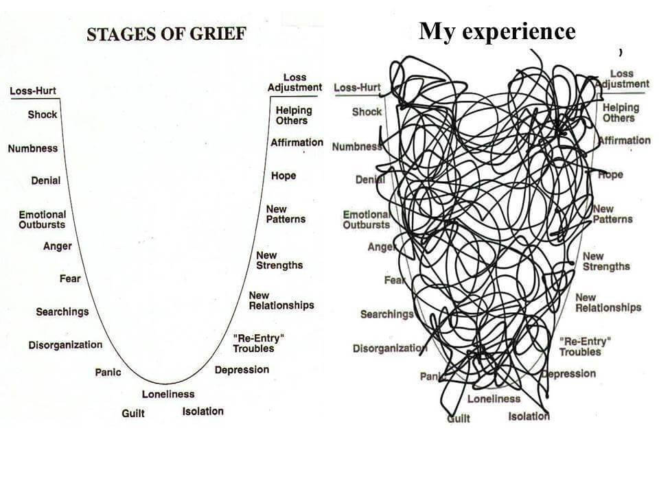 It is at this moment, however, where I see myself veering off an imaginary timeline—a subconscious paradigm I’ve created that would unfold, called “perfectly” timed grief—a fiction not aligned necessarily with the graph on the left (above) but not necessarily fully absorbing the graph on the right.